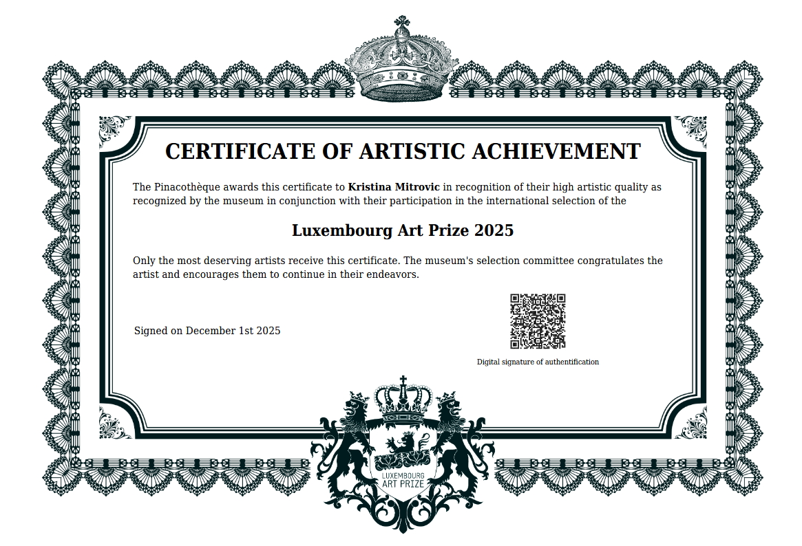 Certificated by Luxembourg museum Pinacothèque, 2021 and 2022