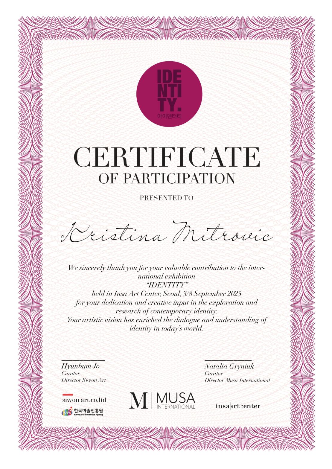catalogIDENTITY Exhibition, Insa Art Center, Seoul, South Korea (Sep 2025)