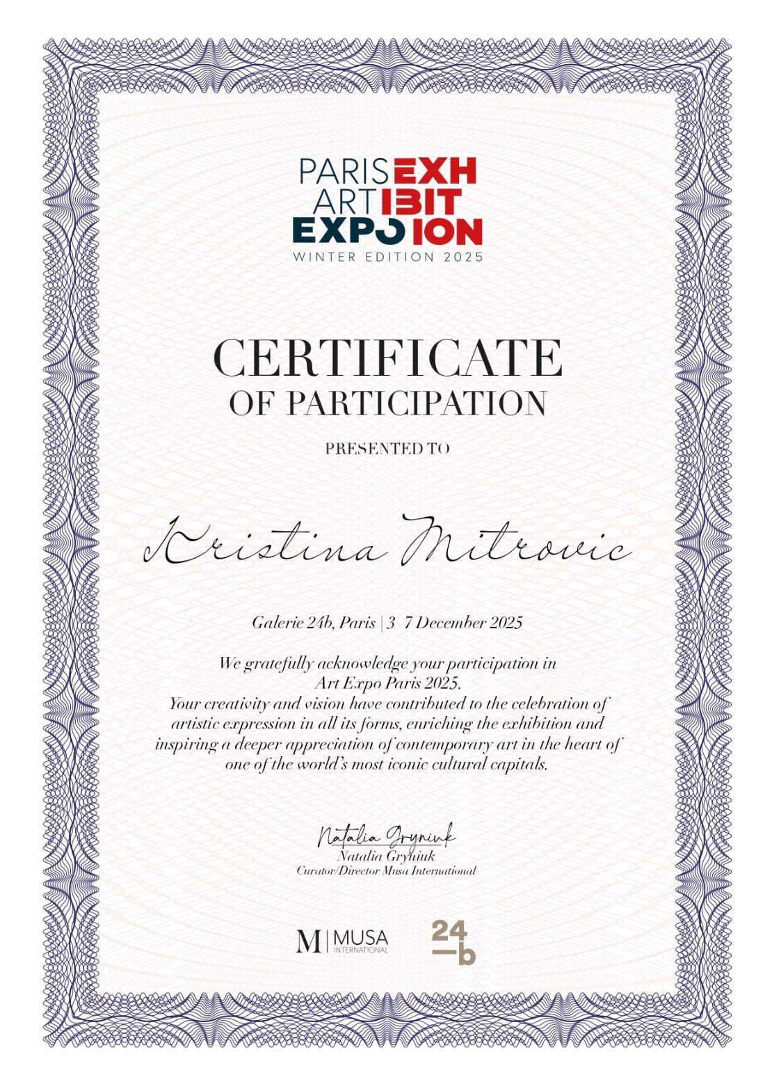 Exhibited at Art Expo Paris in the central Louvre area, successfully showcasing my work in one of the world’s most influential cultural capitals.